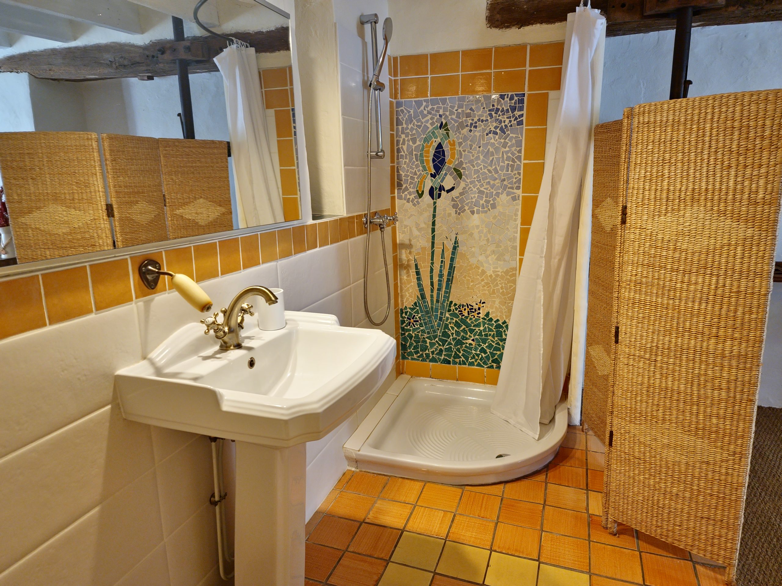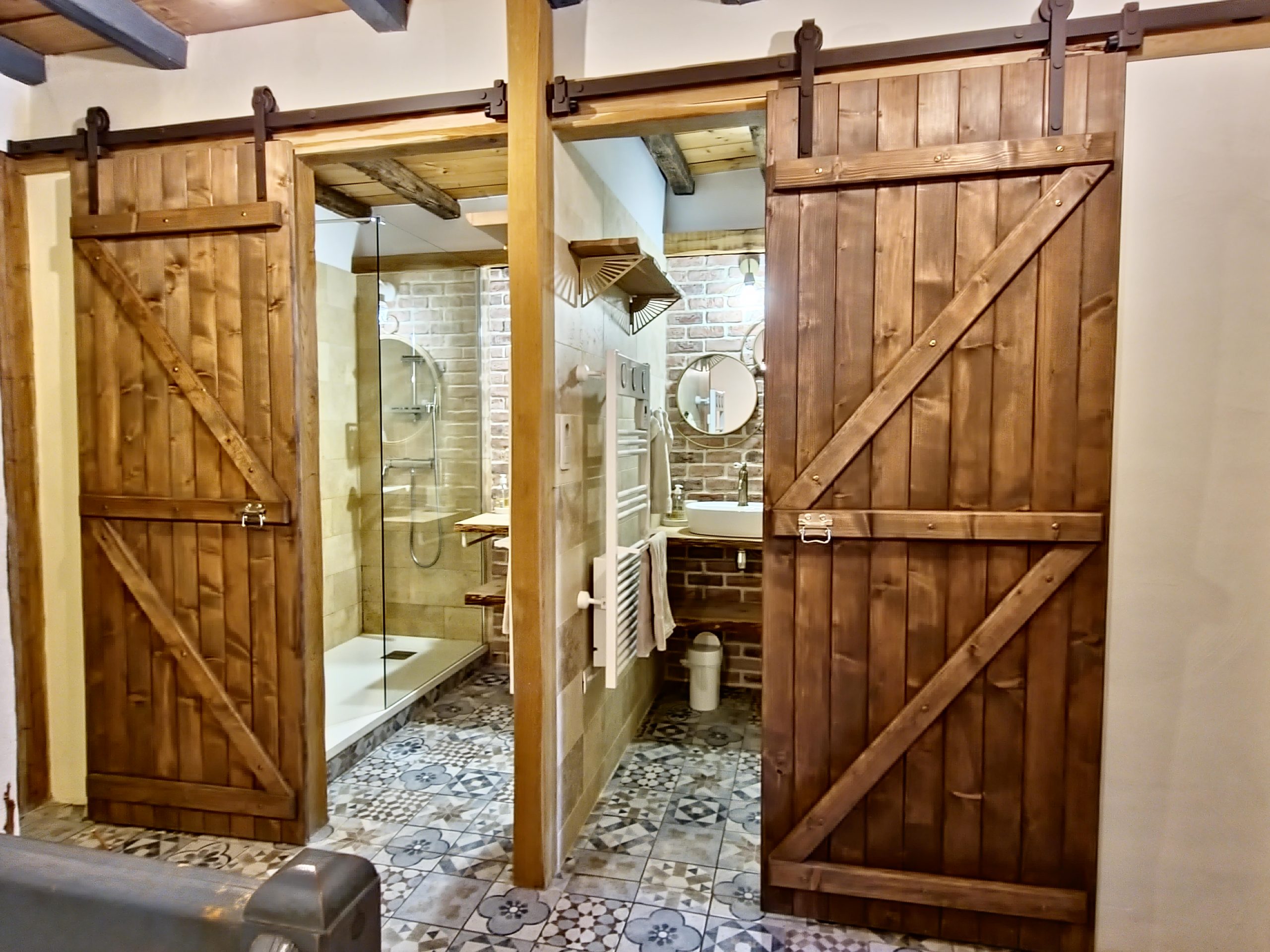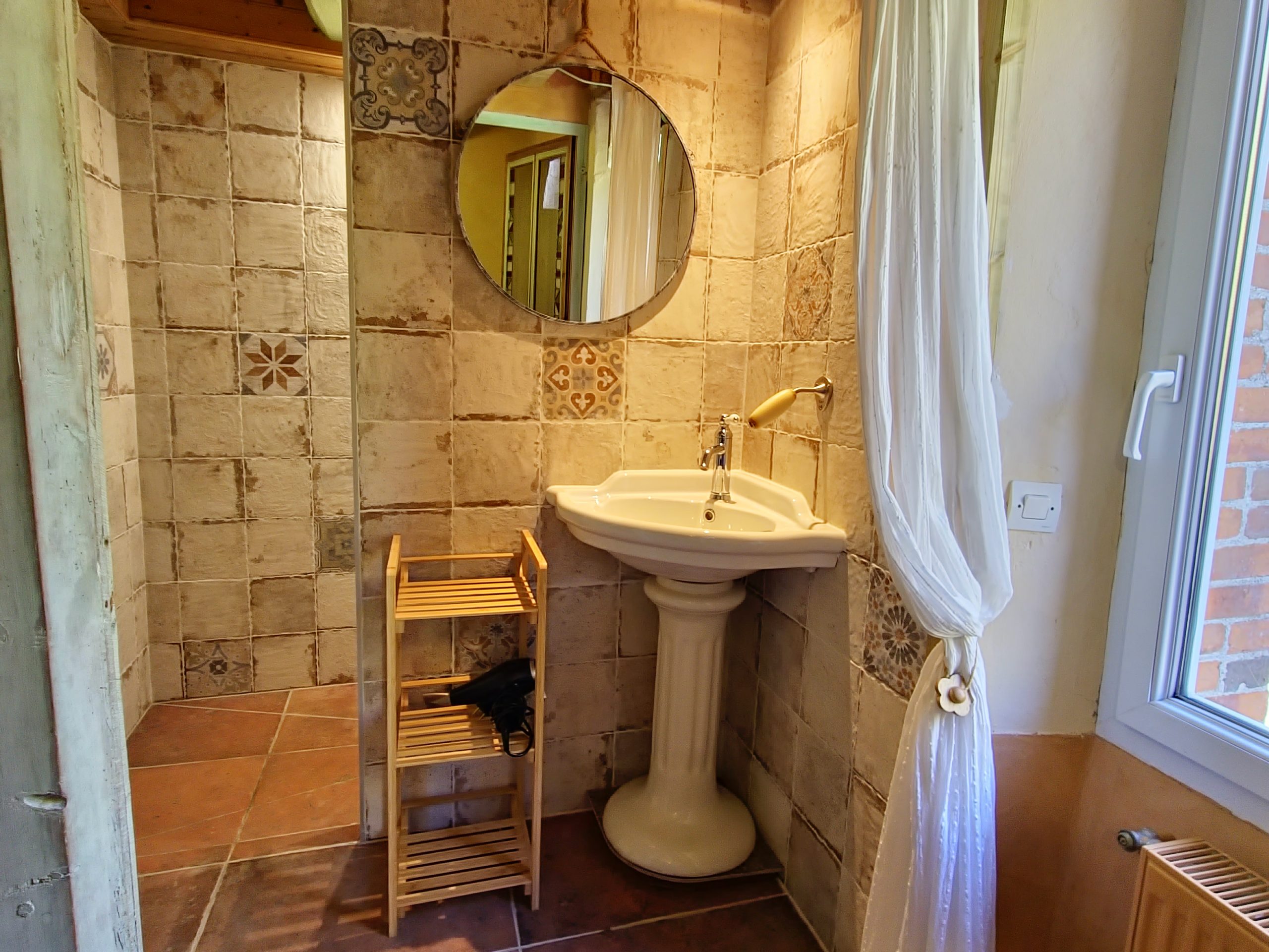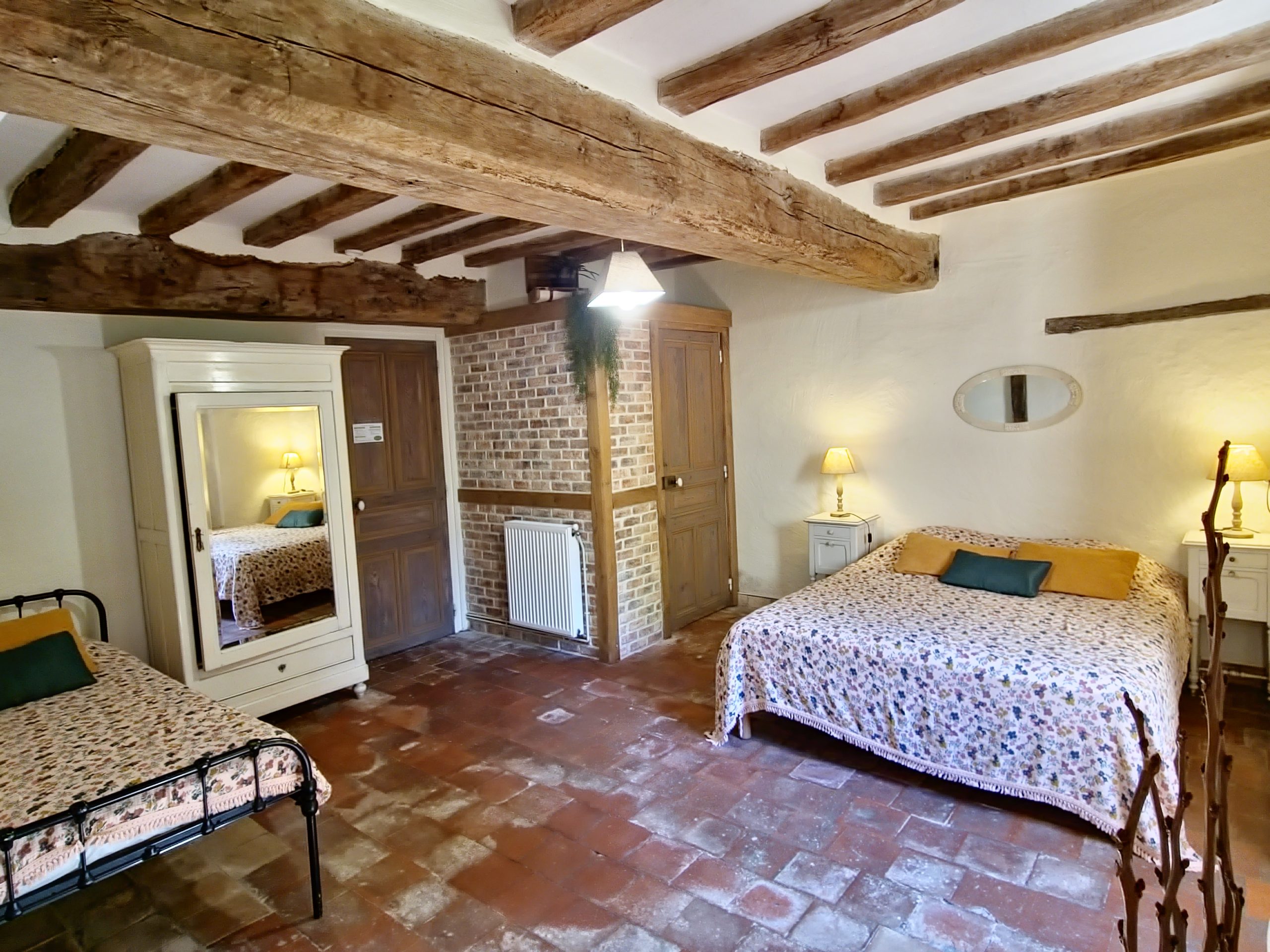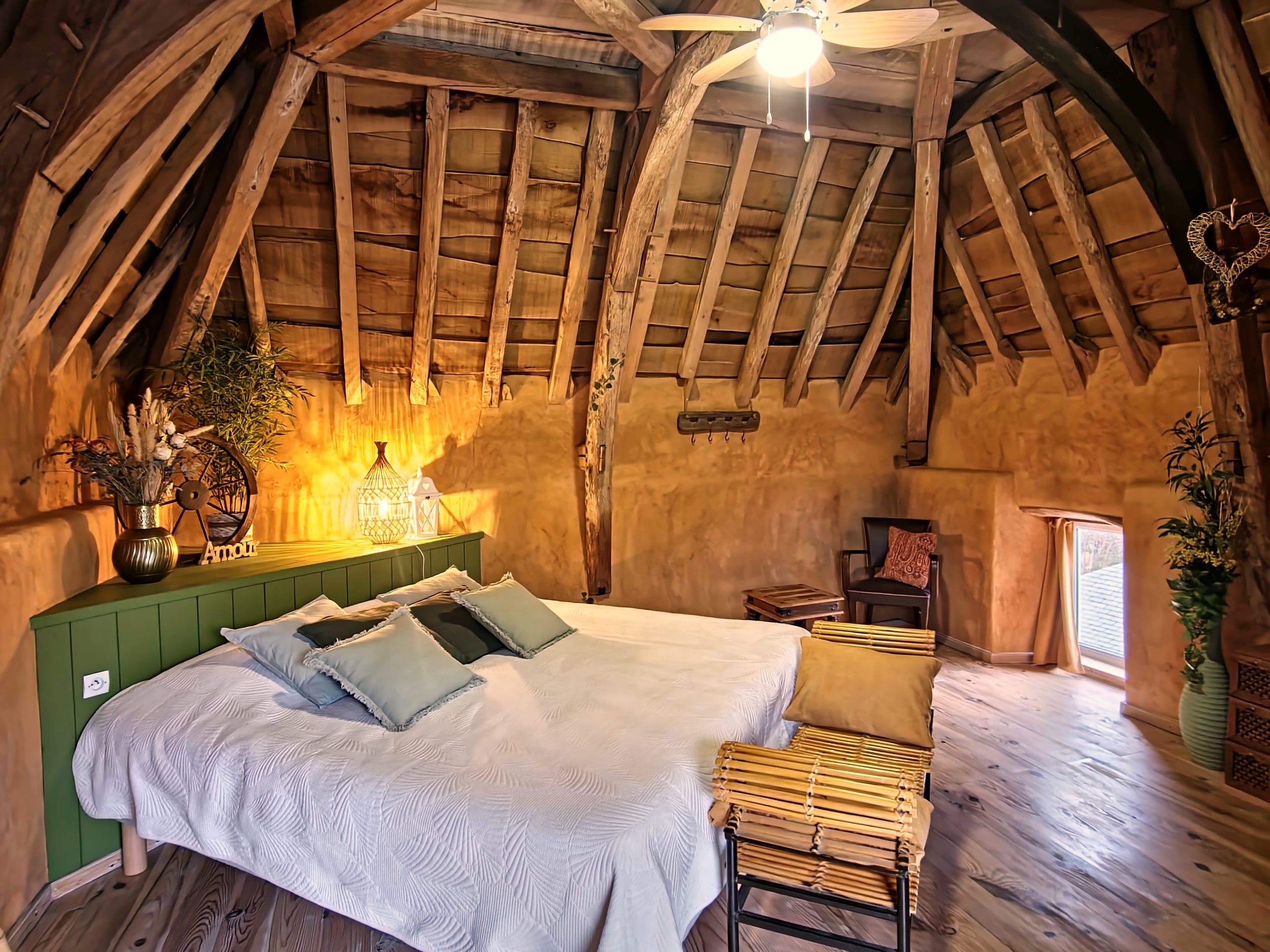 Cet ancien moulin à eau, rénové avec passion a conservé les traces de son passé – meule, trémie, bief et autres éléments participent pleinement à la décoration.